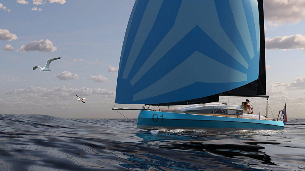 A Light displacement boat with lifting keel and twin rudders suitable for planing on broad reach and for sailing over the mudflats with half-lifted keel, crossing a tidal flat, dry out on the sand or discovering the smallest harbours.